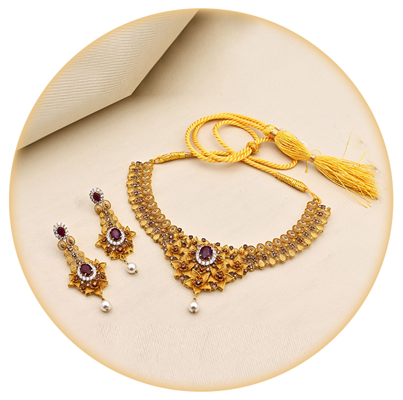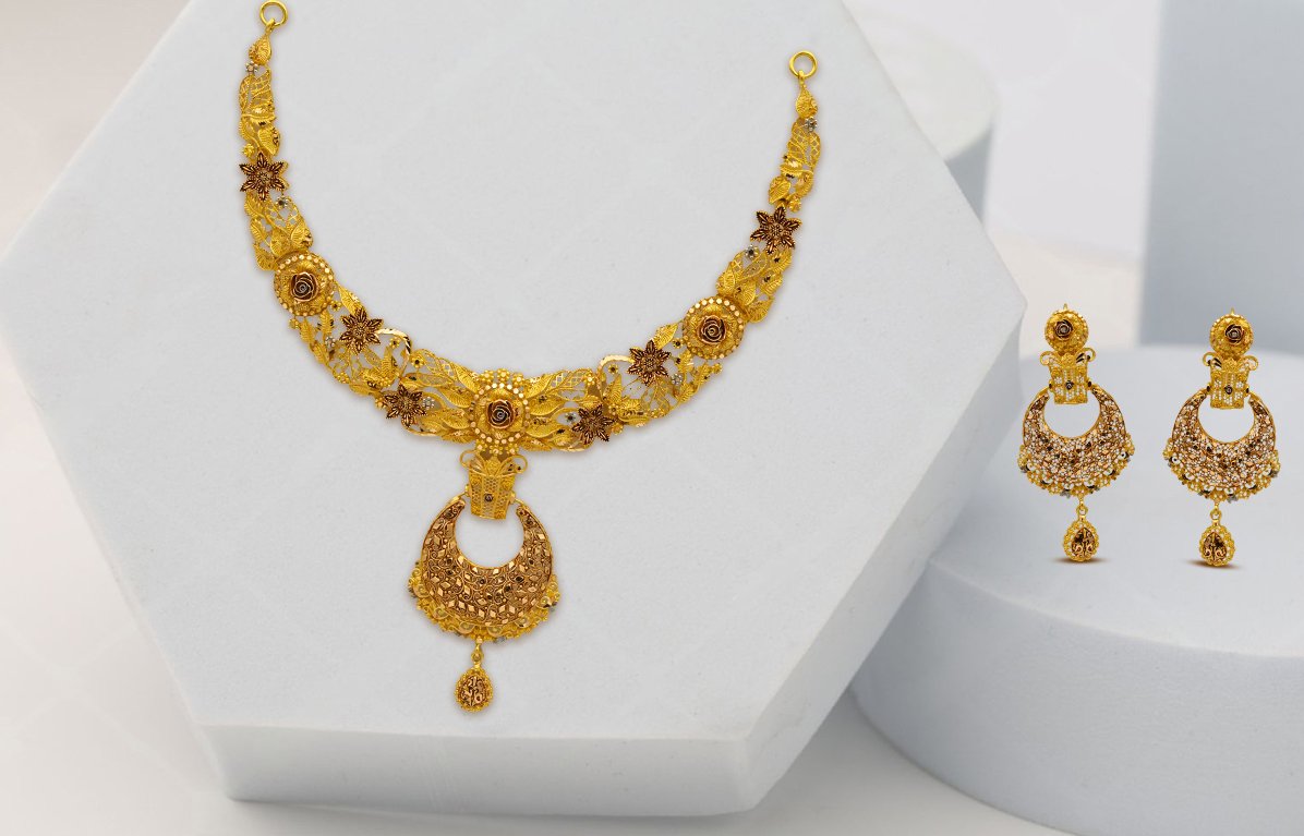 Step into a world of grace with Zewar Jewellers’ gold necklace,